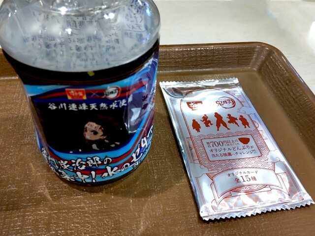 注文は「炭治郎の炭火とりマヨ丼・鬼滅の刃セット」890円+水のゼリー&オリジナルカード