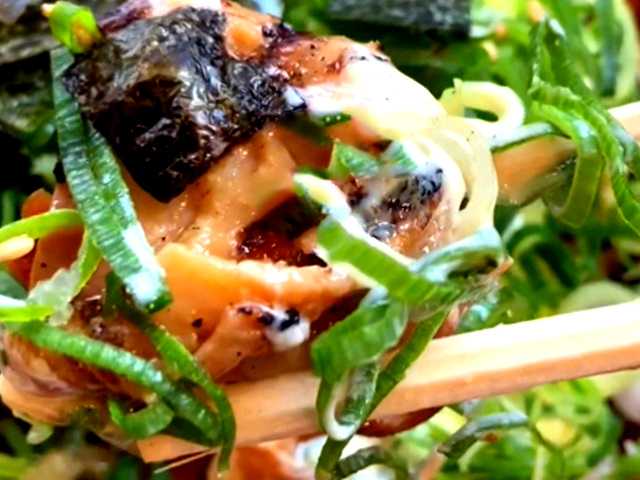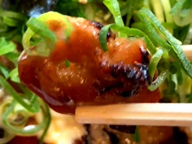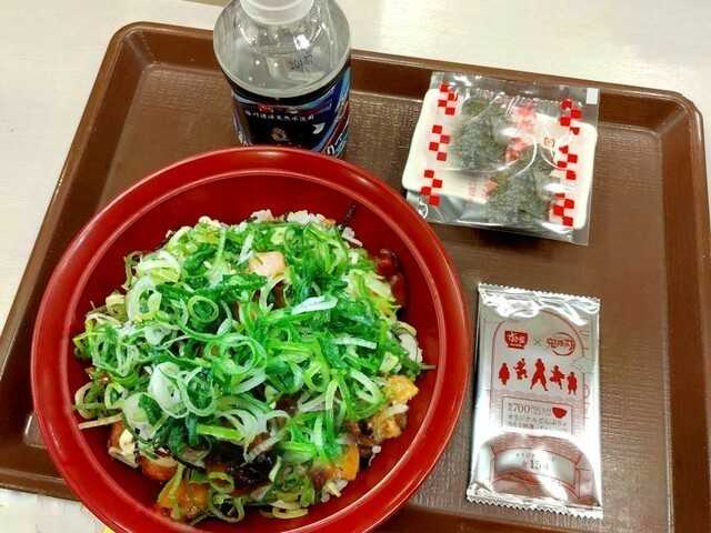 トッピングは、海苔~青ねぎ~マヨネーズ~焼き鳥~ご飯の順番で重なってます。