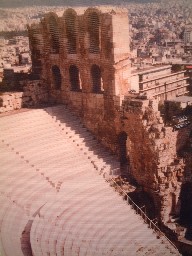 この丘の斜面に沿って壮大な半円形の屋外劇場があります。