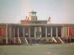 空港の建物には毛沢東の大きな写真が掲げられています。