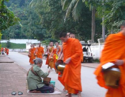 ヴィエンチャンでは托鉢僧がお布施をしてた人に対して読経をしてくれます。