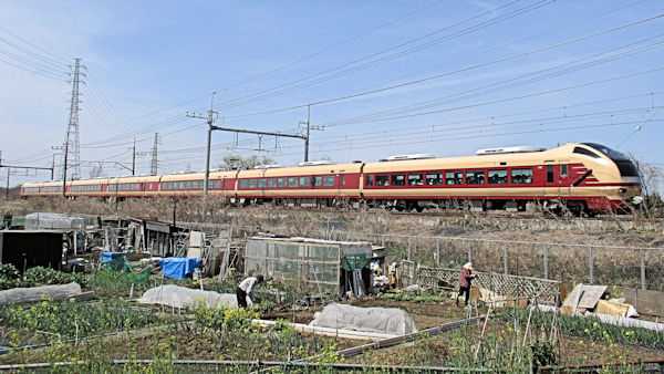 見沼代用水東縁に咲く桜を見ながら自転車で走っていたら、武蔵野線付近にカメラを持っている人がたくさんいました。桜の写真を撮っているような雰囲気ではありません。聞いてみると、