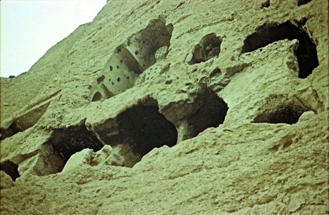 昔は仏教の中心地として栄えていました。 1 世紀からバクトリアによって石窟仏教寺院が開削され始めたとのことで、石窟の数は 1000 以上にものぼります。 6 世紀頃までには高さ 55m と 38m の大仏をはじめとする多くの巨大な仏像が彫られました。石窟内にはグプタ朝のインド美術やサーサーン朝のペルシア美術の影響を受けた壁画が描かれています。 630 年に玄奘が訪れたときにも大仏は金色に輝き美しく装飾されていて、僧院には数千人の僧が居住していたそうです。 2001 年に、タリバン政権の手により爆破されたことは記憶に新しいです。