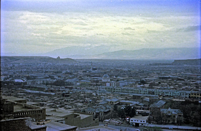 岩山の上からの眺めは素晴らしいです。眼下にカーブルの街を見渡します。遠くの真っ白な山は、ヒンズークシ山脈でしょう。