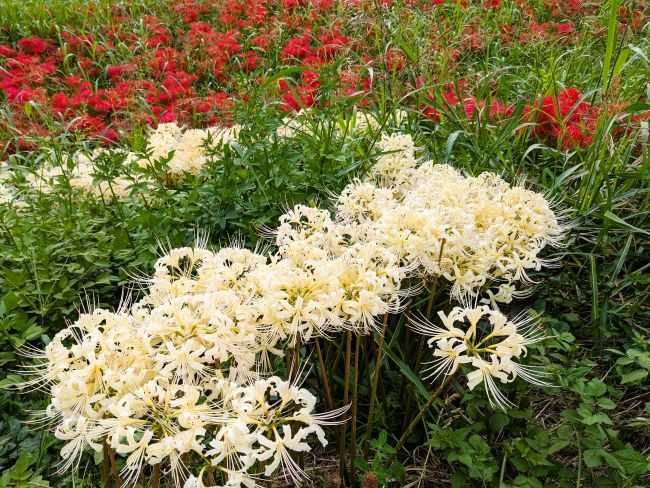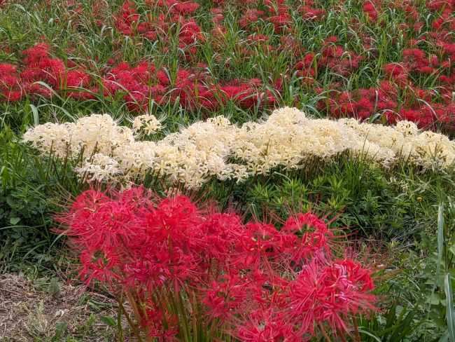 I saw white spider lilies on the bank of the Arakawa river in Saitama city.