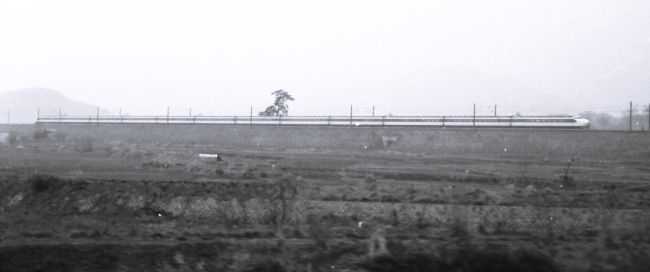 新幹線の写真は、東海道本線米原駅付近で在来線の電車内から撮った 0 系です。当時は、 12 両編成だったことがこの写真からわかります。なお、この写真を撮った翌年、 1970 年に日本万国博覧会(大阪万博)が開催された際、輸送力増強のため 16 両編成化されています。