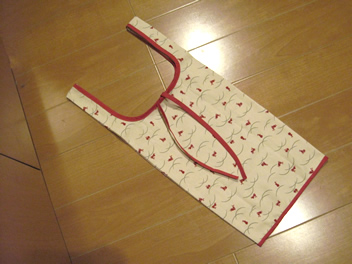 新しいミシンを買ったは良いが、母と姉はともかくも、私はお裁縫に関しては超ビギナ~。思えば、過去にミシンに触ったのは、中学の家庭科以来かも?と言うわけで、とにかく「ミシン」と言う機械とお友達にならなくてはいけないわけです。では、ミシンとお友達になるにはどうしたらいいのか考えました。考えるまでもなく、何かを作ればいいのです。では、何を作ればいいのかな?簡単な物を作りましょう。では、簡単なものって?それがわからない。ぞうきんはもう縫ってみたし。そんなこんなで、悩むこと一週間ちょっとが経ちました。このまま触らずにいるとまたミシン恐怖症になりそうでしたが、一昨日の夜に何気なくサーフィンしていた先で、「エコバッグを作ろう」と言うサイトにぶつかりました。エコバッグ。。。うん。欲しいかも。と思ってみてみると、そこは布地の選び方から作り方まで、とっても細かく紹介されているではありませんか!これなら、裁縫ビギナ~な私でも、イケル( ̄∀ ̄*)ニヤり☆ってことで、昨日はバイアステープとか言うものを買いに、手芸屋さんへ。ところで、バイアステープって、何? なんだっけ?中学の頃に聴いた覚えがある頼りない記憶を呼び起こしつつ、とりあえず「バイアステープ」と書いてあるものを購入。布は、この前ジェニーちゃんの浴衣を縫った残りで足らせます。適当なコンビニ袋を型紙代わりにして布を切り、ドキドキしながらミシンへ向かい、赤い糸がないことに気が付いて姉の家から持ってきてもらい、「バイアステープ」縫いで脱線してもめげず、「眠くなる」とか姉に冷やかされながらカタツムリスピードでミシンを走らせること一日とちょっと。本日、新ミシンによる作品第1号であり、私の新境地開拓作品第1号となる作品、「ちょっと小さめエコバッグ~おやつを買うのに丁度良い♪」が完成しました。はい、ど~ん!ほらほら、こうしてたためばコンパクト♪何か、楽しくなってきたので、エコバッグ作りにハマりそうな予感がします。