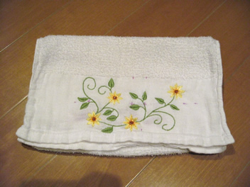 火曜日にミシン付属の刺繍機の使い方を教わってきたので、早速タオルにでもやってみることにしました。どうせ練習だし、失敗しても良いようにと思って、普段から使っているぼろタオルを実験台に。枠をセットして、糸を買えて、デザインのプログラムされたICカードをミシンに差し込み、絵柄を選択して、ポチッとな。あとはミシン任せで待つだけ。。。途中で三度ほど糸の色を変えるように指示されて、言われるがままに交換。そしてまた待つ。。。はい、できました~♪って、すごくきれいに出来上がってるんです。待ってるだけでこんなにきれいな刺繍が出来るなんて。。。凄すぎ☆こんなにきれいに出来るんだったら、新品のタオルにすれば良かったと、後悔中なのでありました\(__ )図案カタログを眺めていると、ドール服にも使えそうな図案がいっぱいありました。オプションICカードをたくさん買っちゃいそうですよ。