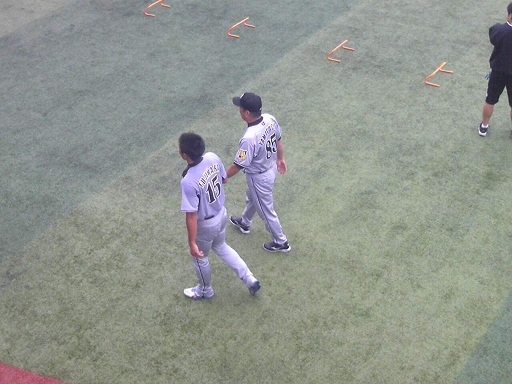 今日は鳴尾浜に行ってました。(BP梅田には行けず〓) 甲子園からバスで行けます。7番乗り場?系統?から『県立体育館前』下車 先発投手はルーキーの岩本。3イニングを1安打に抑えて内容も良かったと思います。 2番手は杉山 2ラン浴びました(´;ω;`) 3番手は川崎 ランナーを背負う苦しい内容。 4番手は筒井 6回は良かったのに7回ランナー出しましたね(´・ω・`) 7回途中から阿部にスイッチ。 これもヒット浴びて筒井に自責が〓 8回の安藤 9回久保田と先頭打者を四球で歩かせるとか無安打ながら一軍上がったら点取られてもおかしくない内容でしたわ……。 打撃内容は以下の通り 1回 (ニ)荒木 四球 (遊)黒瀬 中安打(荒木三進) (左)桜井 遊失(1点) (一)森田 右安打(黒瀬ホーム憤死) (三)新井良 ニ失(1点) (中)狩野 右中間二塁打(1点) (右)中谷 野選(1点) (捕)清水 右安打(1点) (投)岩本 投犠打 荒木 遊ゴロ 2回 黒瀬 中安打 桜井 遊併殺〓 森田 一ゴロ 3回 新井良 右直 狩野 中フライ 中谷 四球 清水 死球 代打・田中 四球 荒木 見逃三振 4回 黒瀬 四球 桜井 三振 森田 左フライ(フェンスぎりぎり) 新井良 三ゴロ 5回 狩野 四球 中谷 投犠打 清水 遊安打 代打・林 右安打(1点) 荒木 空三振 黒瀬 四球 (左)田上 一ゴロ 6回 森田 左本(打点1) (左)新井良 左フライ (三)ベキオナチ 右フライ(フェンスぎりぎり) 中谷 遊ゴロ 7回 清水 左安打 代打・葛城 左フライ (ニ)藤井宏 右直 黒瀬 見三振 8回 (中)田上 中安打 (一)野原将 遊併殺 新井良 三ゴロ 黒瀬とか狩野あたりが元気そうで良かったです〓 あとは林も代打でヒット打ってくれたので調子上げるキッカケを掴んで一軍で見たいです。