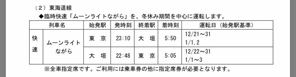 「ムーンライトながら」が運転決定。