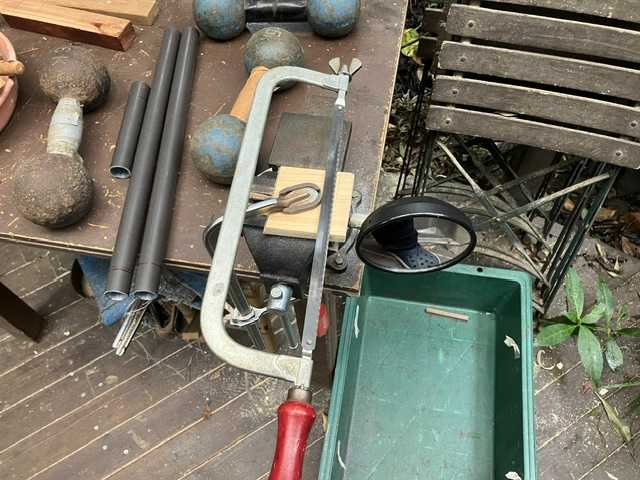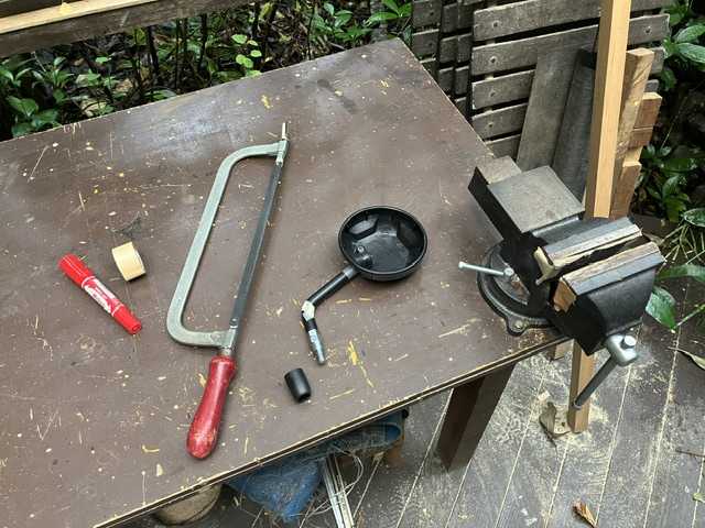 ★久々 バイクに屋根をつけるを 再開したミラーを分解し 壊してしまった ↑ 試作品用にした〜 万力にはさみ ガイドの端材もはさみ カット ( 試し切りです ) 二箇所 柄をみじかくする 溶接の予定〜 ( 外注 ) ここで 左右のミラーが兼用・両用と知るガムテープで仮固定し 右が最も見るから 見やすいミラーにしよう でも 出っ張るなぁ〜 ハンドルを変えたので レバーが出っ張ってる ミラーを必要以上に 出っぱらしたくない〜めどがついた 次回 正規のミラーをカットしよう〜ーー屋根をつけるパイプカットに移る 水平固定 ジョイント左右とパイプで パイプの長さが足りないので パイプカット ぐるぐる ぐるぐる …ジョイントとパイプを 水平に仮固定複雑なパイプ群〜① バイクナビが 干渉して 入らない② 携帯ホルダーも 入らない つけるとこがない ( ① か ②の一つしかつかない )ハンドルは左右に動くから このようなパイプ群になった〜水平の丸木の下は 燃料タンクの蓋がある①ナビは ②携帯と連動するんですよ 購入当初その欠点を知らず ①ナビonで ②携帯バッテリーが無くなるのです かなり早く無くなる ②Gmapで足りますよ ①パイクナビはいらないね!!!でも 配線 外せないないのです〜困った〜パイプのジョイント かなり HCをはしごして 買い込んだのよでも 元に戻した方が いいかなぁ? バイク屋根 雨okの 全天候性バイク ん〜次回 正規のミラーは 短小にし 屋根パイプ郡は 外すかぁ〜元のバイクん〜★