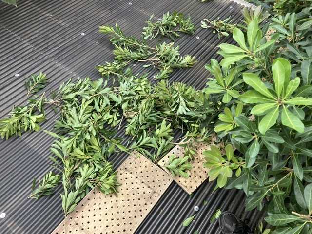 ★ 山桃の剪定屋根にのり 古いので 怖い 木に登り梯子にのり山桃は 一締め 一袋棒樫を 東屋?の上の切り枝を落とす 自分は落ちないように…( モミジはまだ紅葉してない )細断は手がもたないから 箱切り樫切り終えて二袋 一締め今回は 切り終えたのを さらに 剪定し スカスカになりました近所迷惑だと思いからです★