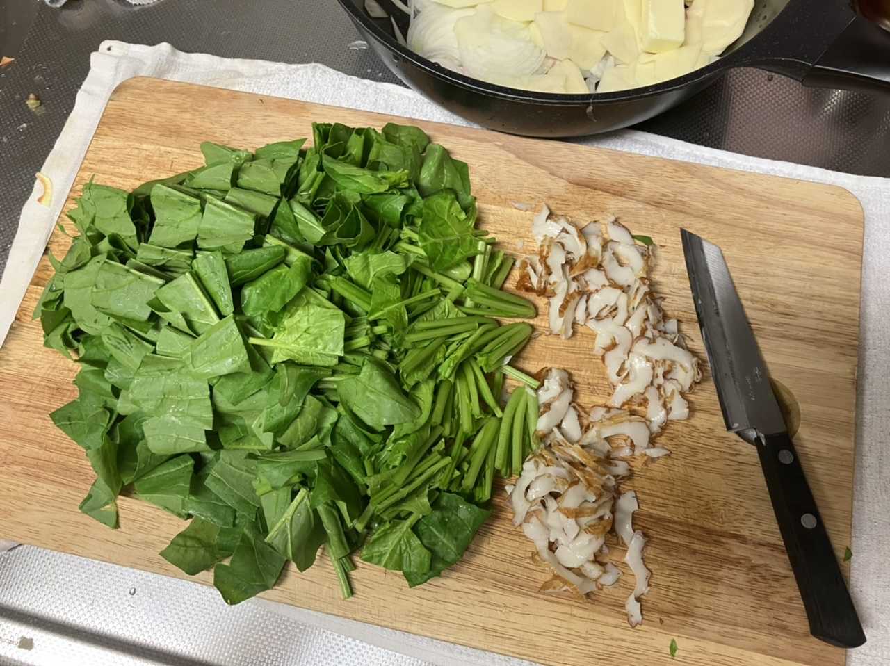 台所のまな板で
