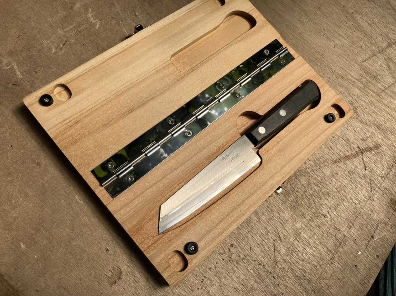 まな板を開くとステンレスナイフは磁石で収まってます