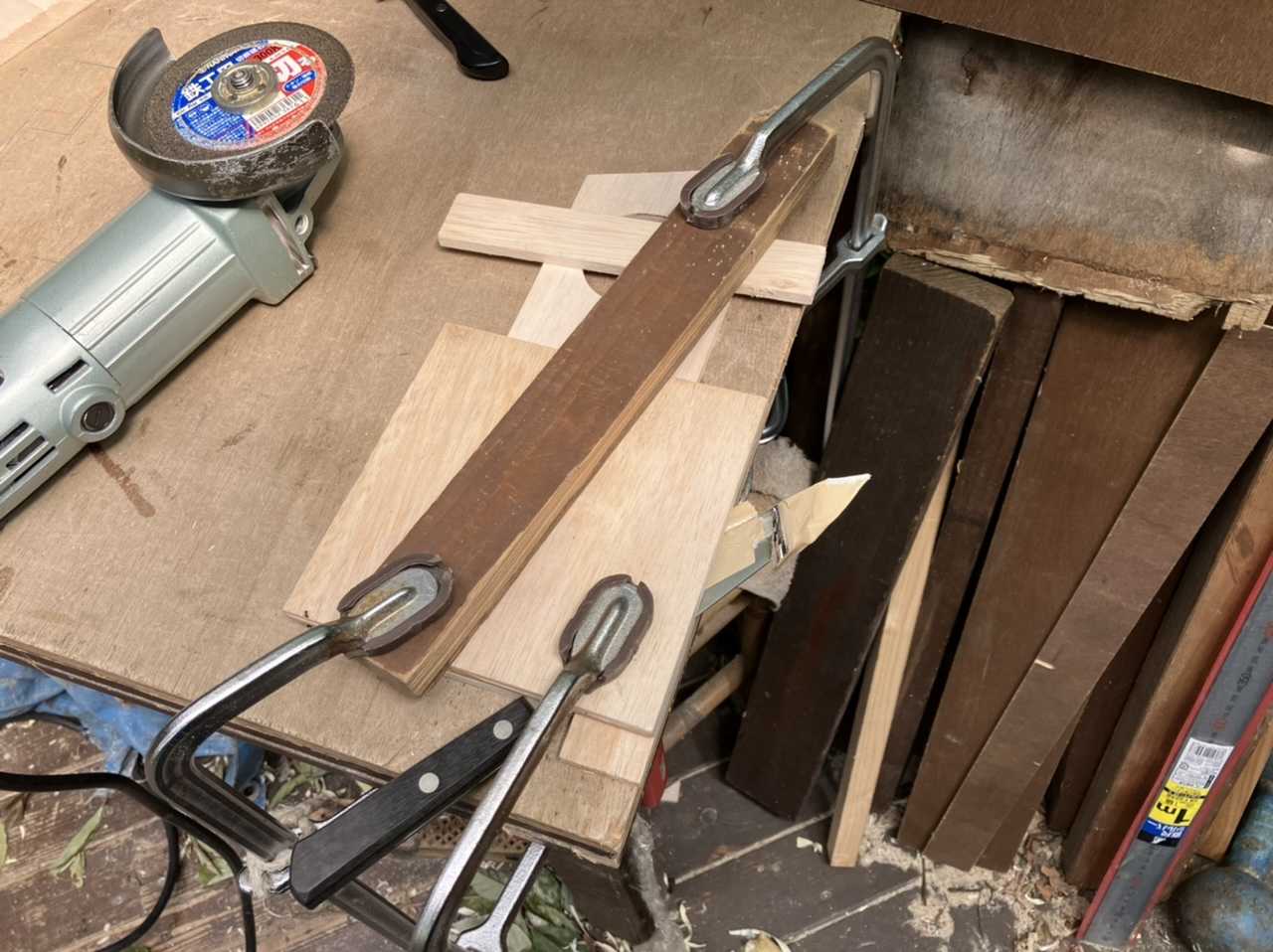 端材で固定し