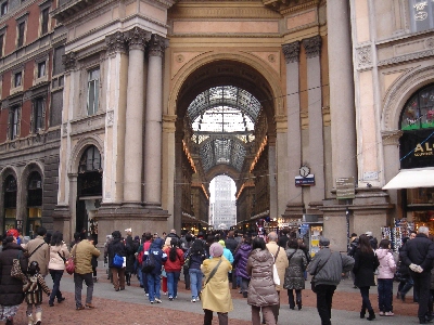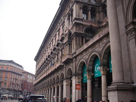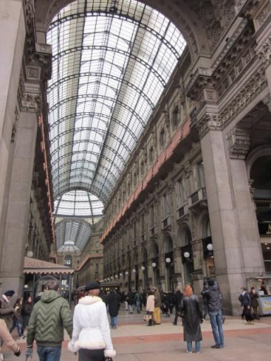 イタリア旅行 2日目 ミラノにて (その3) ** 1月2日(日) **スカラ座から 8分程 歩くと 見えてきました ヴィットリオ・エマヌエーレ2世の ガッレリアの 入り口さっきのスカラ座と これから行くドゥオモ広場を結ぶ十字形の 巨大なショッピング・アーケードです同じアーケードでも 札幌の狸小路とは 規模も歴史も 違います~ ^^; どんどん 進むと… 十字路の中央にある ドーム天井ガラス屋根の アーケードなので 明るいわぁイタリア再統一を 記念して 統一イタリア初代国王の名を取って1865年から 12年かけて 造られました 十字路の 四つ角には誰でも知ってる 一流のお店が… プラダ ルイ・ヴィトン マクドナルド世界のマックってこと なんでしょうか?(笑黒のマクドナルド 初めてみましたよ!口あけて 上を 見上げてばっかりでしたが床の大理石のデザインも 唸ります~(爆 アーケード上部の壁面には 4大陸を表した フレスコ画が 描かれています アメリカ大陸 アフリカ大陸 アジア大陸 どうやら ヨーロッパ大陸のフレスコ画 写し忘れたようです o┤*´Д`*├o 雄牛のモザイク床は モザイクは 本当に綺麗で 緻密です雄牛の所に かかとをつけて上手に 1回転できると 幸運に恵まれるという ジンクスがある場所です でも 観光客が 次から次へと かかとを使って 回るので雄牛の所は 磨り減って 穴が開いています @@2,3ヶ月に 一度は 補修するそうですがすぐに また 写真のような状態になってしまうそうです ^^; 早速 やってみました ^^ますます 幸せになれる事 間違いなしっ!
