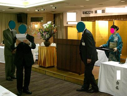 月末が 近くなってきて 慌しい毎日です~夕方から 会社の新年会が 今年は 東急インで 行われました来客の方も 入れて 70名程の パーティです 去年は ブログお休み中で UPしてませんが100名程の人数で 別の会場でした表彰なんかもあったので 私 お盆持ってます q( ̄ー ̄q)去年も 会社の更衣室で 着付けしたのですがなんと 衿芯 持ってくるの忘れて 衿がグズグズでしたの おほほほ 今年も会社の更衣室で 着付けましたが 衿芯は 忘れてません(笑勿論 受付係なので 早めに 仕事を切り上げて でかけます~ 受付1時間前なので まだまだ余裕の ふたりですぅ ^^会社の同僚は 絞りの着物に 十二支の帯で エレガント!彼女はブルー系の 帯揚げが 効いてますね★ ふたりとも 後ろ姿は お太鼓です着物は ちゃんと 裾すぼまりに なってるかしら? 市会議員の先生や 株主さんも 来賓としていらしたのでテーブルを回るのに 忙しくて お料理の画像は ありませんバンケッターの方もいるので あとはおまかせですよねぇそして 自分の分は しっかり 食べましたぁ 本日は パールトーン加工の 小紋に長襦袢は 自作のです ^^v 金糸の入った 昼夜帯やっぱり 髪の毛が短いと 何も飾りが付けられなくて 寂しいですねぇ ネイルは ちょっと派手に お花模様にしてみました お正月に 着られなかった分 明日も お着物です!
