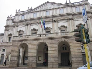 イタリア旅行 2日目 ミラノにて (その2)** 1月2日(日) ** ささ バスに乗って 次なる名所へ スカラ座 泣く子も黙る オペラの殿堂ミラノ大公の命により 着工し 1778年に完成した オペラ劇場です以前は この場所に スカラ教会があった事から この名前となりました2004年に 大改装され 再び ミラノの中心劇場になりました外装は 地味ですが 内部は 豪華絢爛2800もの 席があります 本日の 演目は… 階段への演劇? @@仕事の 季節は パレエです? ^^;すみません イタリア語 ちょっと わかりませんねぇ スカラ広場雪は 全く ありませんミラノでも 雪が降るのは 年に2回程だそうです後ろに建っているのは レオナルド・ダ・ヴィンチ像 ズームすると教科書でみた顔と 似てますねぇ当たり前ですが… ^^;