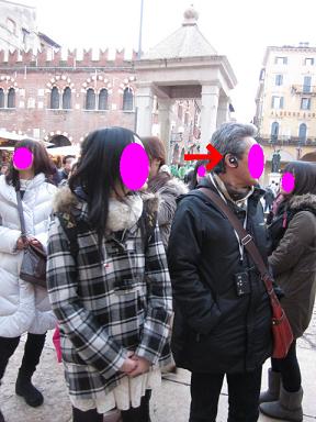 イタリア旅行 2日目 ミラノにて (その7) ** 1月2日(日) ** ジュリエッタの家に 行くのには本当に ガイドさんと はぐれてしまうかと 思いました 今は イヤホンガイドって 便利な物がありますこれがあると 日本語の説明も よく聞き取れるし人混みの中 離れて歩いていても ガイドさんが「 風船のお店の所に います 集まって下さいね~ 」と言ってくれると一瞬 ガイドさんを見失っても 「 あぁ あのお店の前だね 」ってわかるので大変 優れものだなぁと 感じましたでも 紛失したら ¥15,000だそうです ^^; さてさて ジュリエッタの家で お終いと思いきや近くに ロミオの家もあると言うので 行ってみましたよ ロミオの家 今は 普通のアパートです ^^; ちゃんと 『 ここが ロミオの家 』って 看板もあります デッラ・スカラ家の廊もう 日が暮れてきて 見えにくいのですが紋の模様は スカラ家の紋章になっています13~14世紀が デッラ・スカラ家の 黄金期でしたつまり その時代に ヴェローナも 栄えた訳ですね 屋根の上の「M」の装飾は 皇帝時代の建物の証のようです日本では 室町時代の頃に ヴェローナでは 皇帝や貴族が 大手を振っていたんですねぇ 暗くなる前に 急いで ここも見ておかなくては… ランベルティの塔 高さ 84mの 時計塔になっています 塔の前は 広場になっていて この時期は のみの市のようになっていました シニョーリ広場 そして またまた 移動 本日 最後の観光は… 円形闘技場( アレーナ・ディ・ヴェローナ )どこに行っても 何を見ても「 日本とは 歴史が 違うんだわ… 」と思ってしまう 私なのでした
