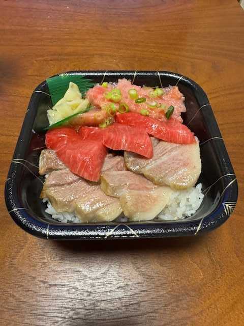 嫁が増尾に新しいお店を見つけた。海鮮丼物のテイクアウト専門店だ。なかなかリーズナブルなお値段が嬉しいお店。普通は高価なネタが乗っていても通常の海鮮のお店で食べるお店よりもかなり安い。生と炙りのトロがのって1,100円。ネタがてかっていていかにも美味しそう。4つくらいランクがあるうちの1,100円のうな丼。どちらも美味しかった。種類も豊富なのでまた利用したい。
