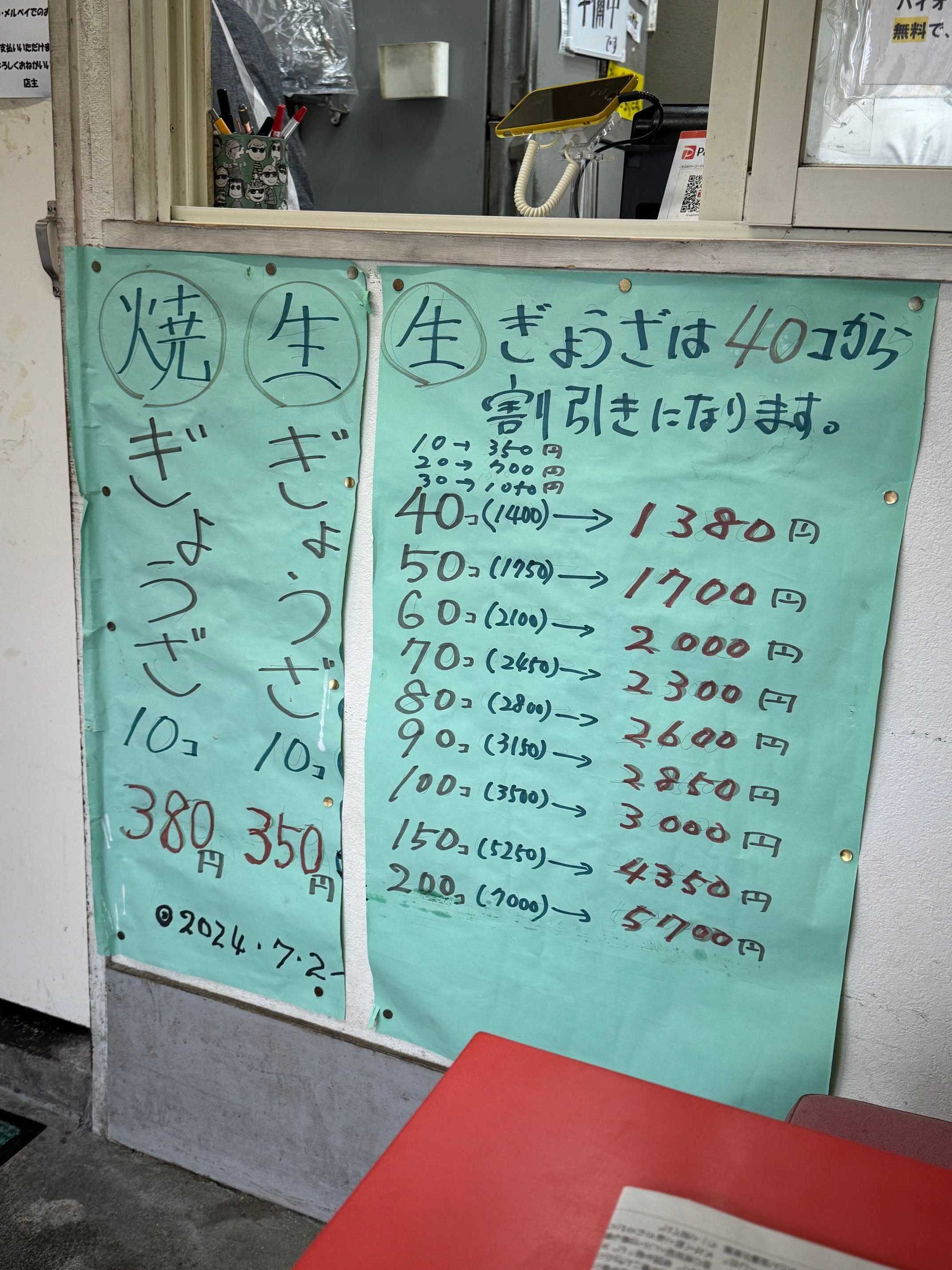 Youは何しににっぽんへ?という番組で「餃子大好き」外国人が「ここの餃子が美味しい」と紹介していたお店が柏にあるという。割と家の近だったのでお昼ごはんを餃子にすることにした。徒歩でも10分足らずのこじんまりとした佇まいのお店。嫁が「20個は余裕で食べられる」というので40個買った。初老の夫婦でやってらっしゃる。40個で1,380円、餃子の王将とかで食べるよりだいぶ安い。家に帰って熱々を食べたらなかなか美味しかった。でも、さすがに一人20個は食べられなかった。自分は半分、嫁は3個ほど残した。残った餃子は冷凍にして後日食べることにした。肝心の餃子の写真を撮るのを忘れてしまった