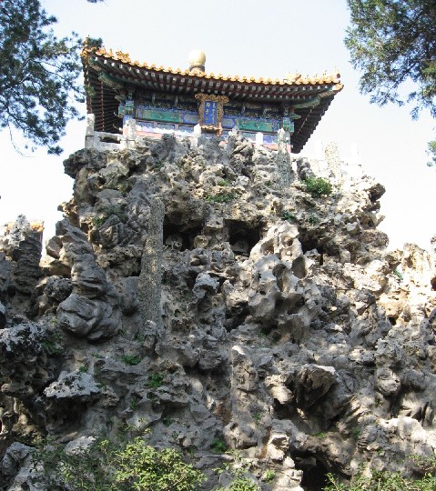 カイチ、日本ではなじみがありませんね。カイチは韓国までは伝わっていて、企業「ヘテ」のロゴはカイチです。【ヘテ】 「HAITAI」ホームページまた台湾の中華民国国防部憲兵の腕章もカイチです。【ヘテ】 憲兵司令部 カイチなぜ、日本には伝わらなかったのでしょう。カイチに私が突かれなかった理由。すでに角が摩滅していたという声、そのとおりかもしれませんね。私が見逃されるはずはありませんから。皆さんも、いつかカイチにご挨拶されますように。【日記】 善悪を知る者 ―カイチ―【故宮 御花園 堆秀山の上 御景亭】太湖石の築山でできた堆秀山の上に建物があります。旧暦9月9日重陽節に、皇帝が登り菊花酒を飲みました。***