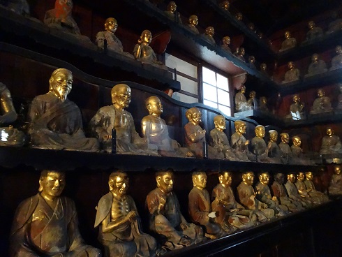 有名な五百羅漢様に再会しました。20年以上を経ての再会です。暗い堂内は撮影可ですが、フラッシュは禁止。20年前は写せなかった羅漢様も、現代の1600を超えるISO感度であれば写せます。迫力ある羅漢様を、かつては怖くも感じました。再会した今では、ただ懐かしいばかりです。有名なマルコポーロとフビライ・ハンの羅漢像。以前は説明書きのパネルがありましたが、今はありません。おふたりの密談も、まだ続いていました。このかたも、健在でした。次にお会いできるのは、いつのことでしょうか。