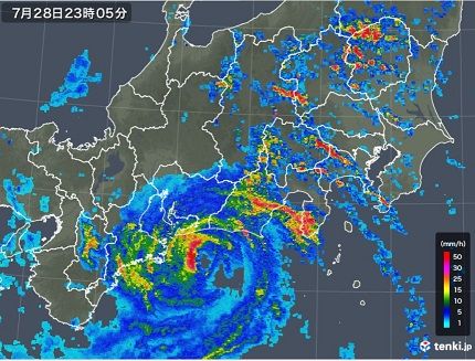 台風接近中。皆さんのお役に立つかもしれませんので、状況を随時追加します。20:45 台風は静岡沖。愛知県は雨風ほとんどなし。21:30 愛知 降雨なし。不気味なほど無風。台風は静岡沖。22:30 愛知 雨なし、風なし、台風接近の実感なし。 台風は22時推定で御前崎市の南南西50㎞。970hPa。23:10 愛知 雨降り始め。無風。 台風は愛知の南にいる様子。29日 0:00 愛知 通常の雨。微風。 台風は間もなく三重に上陸。台風の北側は影響が少ない?0:20 愛知 急に突風が吹き始める。雨の量もやや増す。0:30 愛知 天候急変。家が揺れるほどの強風が吹き荒れる。 雨雲レーダからは台風は三重に上陸の様子。1:00 愛知 危険な強風。今後、台風北東の雨雲が接近の予測。 まだ台風上陸の発表はない。 台風の東は強風域。とりあえず就寝。1:04 気象庁 三重県伊勢市付近に台風上陸と発表。 それにしても風が強い。外出は危険。