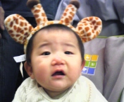 フードのついた洋服を着せたら、一生懸命前にひっぱり、トレナイ(怒泣)とやるのがカワイイ(笑)