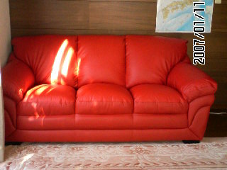 年末に古いソファを思い切って処分。急に片付け魔になった私は、コーナーソファを1人で車に乗せ、クリーンセンターへさて、ソファ購入の予定が年末配送は無理と言われ断念来年に持ち越し。ソファのない広々リビングのお正月でした。しかし、やはり必要なのでチラシを見て近所の家具屋へ。クッションの良い、イタリア製の皮とデザインのお手頃品を見つけました。今回は3人掛けにして色はレッド。黒・グレー・濃緑は部屋が暗くなるし、アイボリー・ホワイト系は汚れるか~~~!?ってことで、レッドに決まり見本はアイボリーだったので、切れ端で色味を見て決めました。その時はかなり落ち着いた赤だったのに。到着したソファはかなり明るいそういえば、店員さんが『割りと明るめですよ~~』と言ってたなぁ…ま、いいや。学校から帰ってきた子供の反応がおもしろい。まず、次男(小4)帰宅。『あれッすご~~い。(座ってみながら)前のソファも最初はこんな風にフワフワだったの』すごい。そんな事を考えるとは。チビだからソファがでかく見える(笑)次に長女帰宅。『おぉ~~~いいじゃ~~ん(ダダだ、ジャ~ンプ)やっぱこんな風に出来るのがいいよねェ~』こら飛び乗るなそれから長男帰宅。『おおおぉ~~~~いいねェ~お母さんすごい気持ちいいよ~(超~~~ニコニコ)』真ん中に座りご機嫌です。最後に主人帰宅。『おっおおぉ~~~いいじゃんうん、いい、いい。』主人は直接見てなかったので、この反応にホッとしました。あのクッション性はどの程度持つのだろう…部屋の中のワンポイントの赤に元気が出そうです
