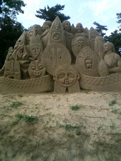 砂を水で固めて彫刻の様に掘って砂像を作ってありました。作る人を砂像マイスターといい、世界中の方が係わっているようです。ちゃんと大会もあるらしい…(??????@;)