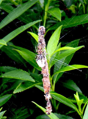 食べかすなどのごみを網の中央に集め、静かに獲物を待つ。子供のころから見ていたと思うが意識しだしたのは篠山に来てからである。クモの本体はよく見ないとわからないが巣は簡単に見つけられる。