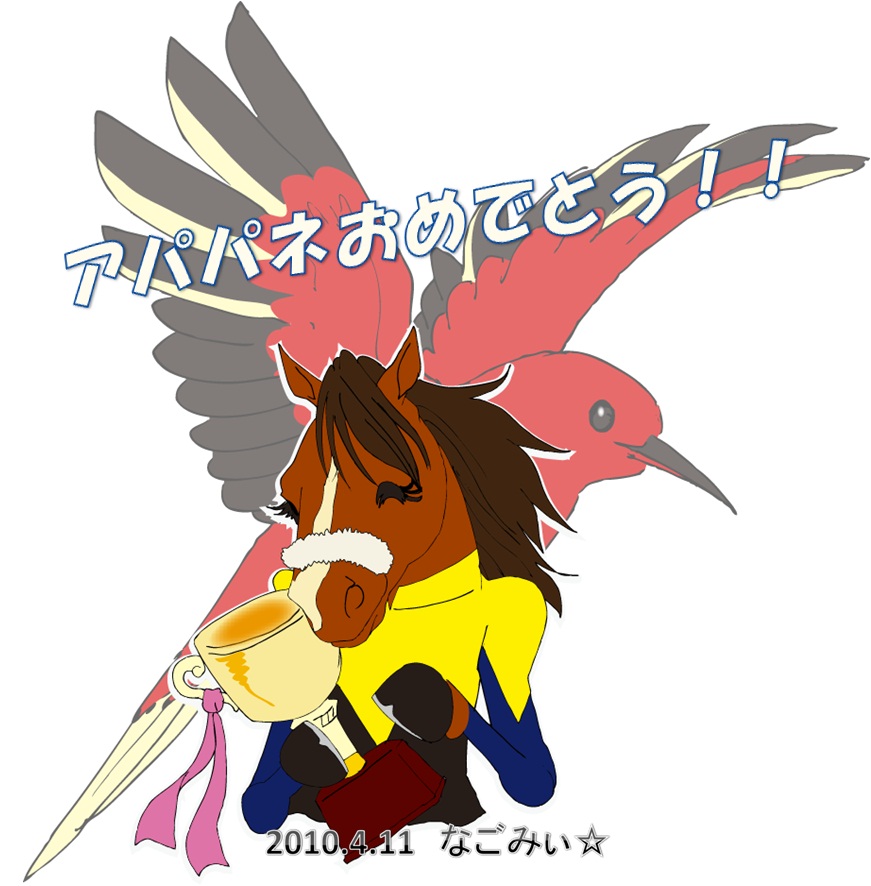 桜花賞、アパパネの見事な勝利でしたね。 馬名の意味は、 「ハワイに生息する赤い鳥」お父さんはあのキングカメハメハまさに、鳥のように駆け抜けた桜道!! おめでとう。アパパネ^^。