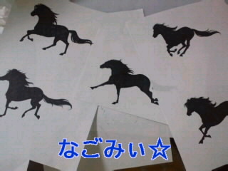 昨日で引越しも無事終わり、後は新居の片づけ&レイアウトをどうするかというところ…「新居・馬だらけ化計画」を実行中の私ですが、思ったようなグッズがなかったりするので…思い切って自分で作ることにしました♪まず攻めたのはトイレ内。便座カバーとマットとトイレットペーパーのカバーはゲットできたのですが、タオルが無い!!という訳で今日必死になって作ったデザインがこちら↓です。一枚から印刷の発注をできる業者があるので、さっそく注文しようと思っています♪♪こんな調子でマグカップ等々も作るつもりです^^家を「自分作・馬グッズ」で埋め尽くしてやるのだ~!!※馬バカの独り言です…気にしないでください(笑)