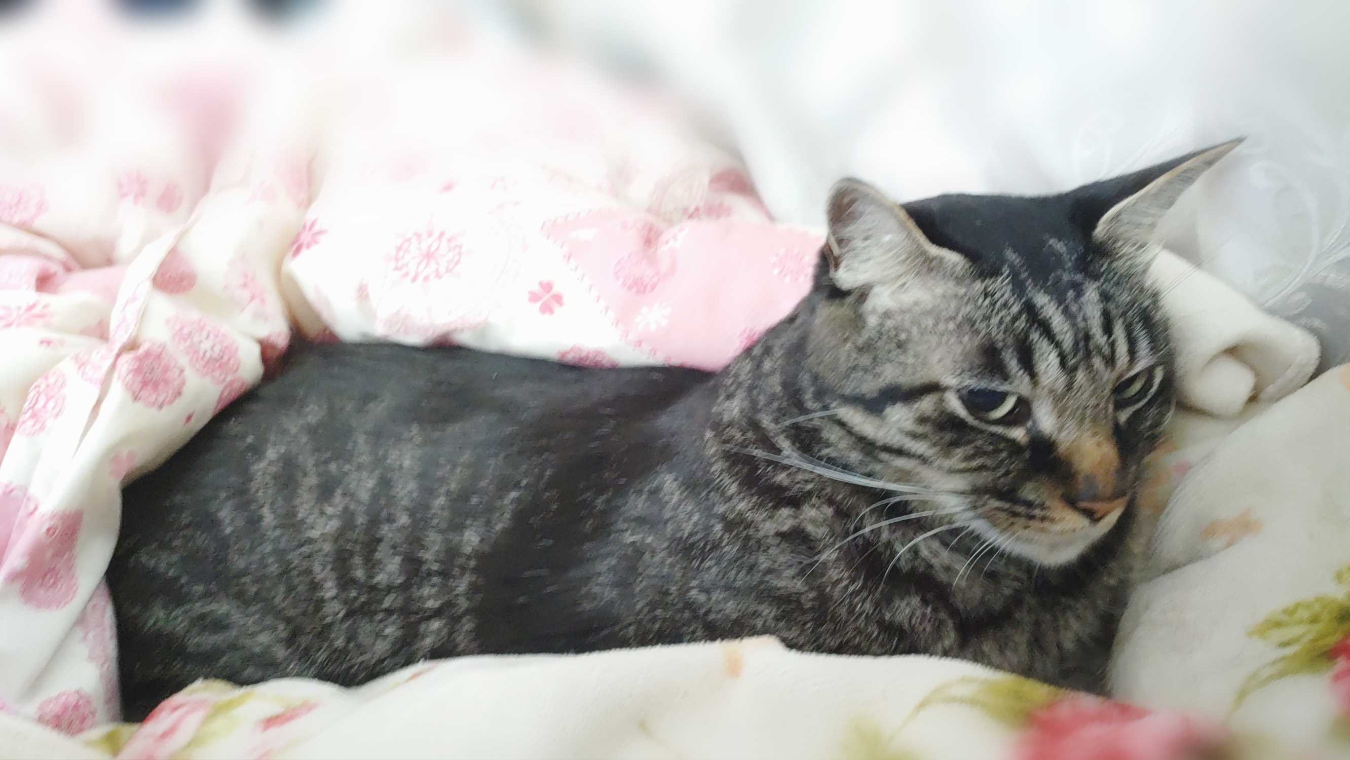 一気に涼しくなり 夜は薄掛けでは寒くて毛布追加したら猫くんが時々は添い寝するように…