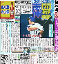昨日は勝てそうで勝てなく同点で終わりましたなんといっても川上憲伸さんのホームラン今日は勝ってくださいね!憲伸、開幕弾 びっくり!竜投手史上初開幕不敗男が負けるはずはない。先取点を許した3回は、憲伸自ら同点弾。9回の痛恨失点は、中村紀が執念の一打で取り返す。いきなり熱い死闘ドロー。さあ今季初星、今夜こそ-。 エースは絶対に負けない。開幕戦不敗の川上が1点ビハインドでマウンドを降りる。直後の9回裏、同点に追いついた。川上が一瞬だけ背負った黒星を“不敗神話”が消し去った。 神話は生きていた。開幕投手を務めた過去5度、川上自身は3勝無敗。過去10年のキャリア、開幕戦を含む自身のシーズン最初の登板も5勝負けなしという強さだ。 勝負事の女神を振り向かせたのは、ほかならぬ川上だ。波瀾(はらん)万丈の川上劇場。1点先制された直後の3回の攻撃だった。ナゴヤドーム全体が度肝を抜かれた。「狙ったわけじゃないけど、甘い球に体が反応しました」。先頭の川上がフルスイング。「スライダー系」という変化球は左翼席へ。同点ソロだ。 取られたら、自分で取り返す。負けず嫌いのエースを刺激したのは、直前の失点だけではなかった。「『しっかり投げろ』とヤジられて、悔しいから打ちました」。火を付けたのは何と、スタンドからのヤジだという。反骨心を燃やした。かっ飛ばした。「正直、完ぺきでした」。チームの今季初本塁打、初打点までたたき出した。 スーパーエースぶりは記録も物語る。開幕投手の本塁打は2リーグ分立後の球団史上初という記録。セ・リーグ全体で見てもヤクルト・ベバリン以来5人目、7度目だ。「時代も違うでしょう」。本人は謙遜(けんそん)したが、時代としては今、投手の本塁打は減少傾向にある。そんな現代において、川上が放った本塁打は05年7月29日以来約3年、973日ぶりの通算8本目。現役投手では断トツ。胸を張れる“強打者”だ。 客席を一気に沸き立たせた一発。直前までは、冷や冷やだった。3回まで6安打1四球とピンチの連続。3回2死二塁ではシーボルに右前先制タイムリーを許した。 「自分の悪いところは先取点を与えてしまったこと。開幕の緊張感の中で、追いかける立場よりは、追いかけられる方がウチの野球のペースなのに、それができなかったところを反省しないといけないですね」 先取点の献上。そしてヤジ…。火が付いたとたん、快投が始まる。「状態が良くなかった割にはゲームをつくることができました」。4回から8回までは別人のように1安打無失点。9回に勝ち越し点を与えたが、トータル9イニング2失点。結果は十分な“完投”だ。 白星こそ付かなかったが、2リーグ制移行後、球団史上最多新記録となる6度目の開幕投手をキッチリ務めた。球団史の最上位に名を刻むエースが、次は勝つ。