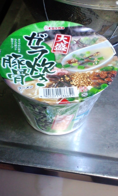 今日は私だけで店番です。お昼は99コンビニで買ってきたカップ麺蓋を開けて具とスープを入れて熱湯を入れて3分経ったら出来上がりお腹をふくらませて塩分補給には良いかな?胡椒と紅ショウガが此処へ欲しいです