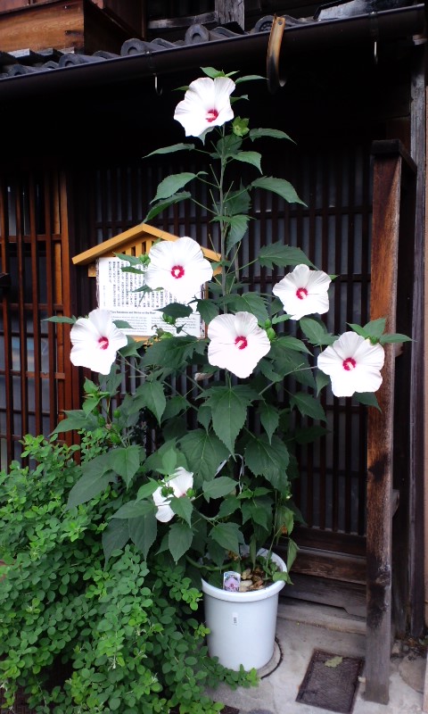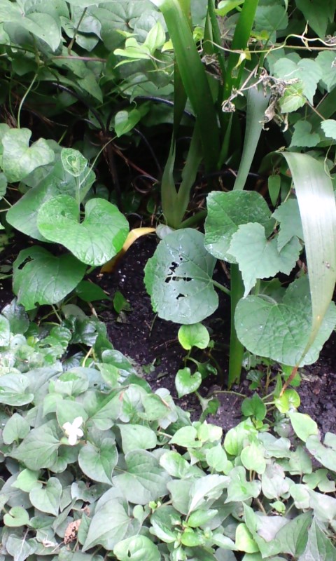 無線の先輩から瓢箪の苗と綿の苗を頂きました。瓢箪は庭に直接植えました。綿はプランターに植えて屋根神様の下に置いてあります。共に花が咲くのは来月そして、実が出来るのは9月になってからさて、どうなるでしょうか?庭にこんなのが自生したのですがこの花は何???わかる方教えてください。