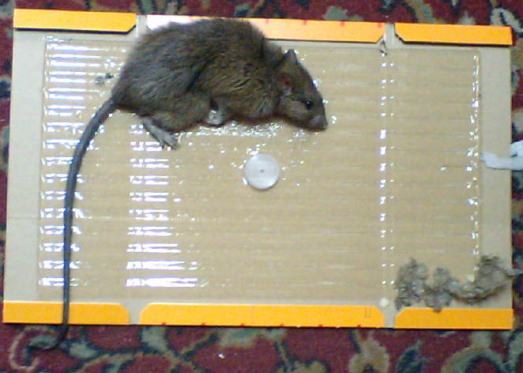やっと捕まりました大ネズミ餌を全て隠しておいたのでガリガリです