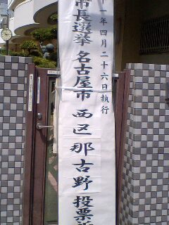 今日の名古屋は肌にあたる風が冷たく長袖で出かけました名古屋市長選挙投票所この大不況の中名古屋を変えてくれる方誰になるでしょう?今夜の開票が楽しみです。