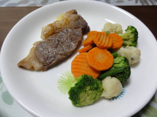 今晩はお肉でした。たかぁ~いお肉がスーパーで安かったみたいです。ジューシーで贅沢で、プチお金持ちになった気分です。気分だけですが。