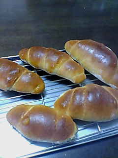 今年になって、多分1度も使っていないであろう、宝の持ち腐れになっていた“ホームベーカリー”を出してみたベーカリーを購入した時についていた、レシピ本とにらめっこしながら、久しぶりにパンを作り始めた去年は随分パン作りをしたはずなのに、分量とか、本を見ながらじゃないと作れなくなっている自分にびっくり今回は、ただ、食パンを作るんじゃなくて、違うパンにしようと思って、1次発酵まで、ベーカリーに任せました打ち粉をして、ガスを抜いて、休ませて。。。平たくして、クルクル2次発酵させて、オーブンでチーンうっ。。。設定温度高かった??チョット、黒いし バターロールこんなもんよねまあ、気を取り直して。。。惣菜パンの、ウインナーロール何か、気分がノッて来たよーしっ!!食パンも作ってしまえ~~~と・・・、朝の9時に作り始めたパン作りは、夕方、4時30分まで続いたのでした・・・。学校と、幼稚園から帰って来たこうくんと、たかたんの、いいおやつにもなったし、楽しかったから、たまにはいいかなでも、まだ、大量にパンが残っているので、しばらくは、作りませんが・・・