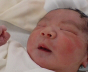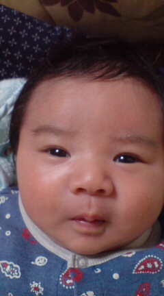 もう、1ヶ月経ったの~?日々、忙しく過ぎていく中で、生後1ヶ月になりましたこうくんも、もうすぐ2年生。早い!!そんな訳で、先日、1ヶ月検診に行って来ました。毎日みているから、全くわからないんですが、りょうは、すくすく大きくなっていました 身長 51cm → 56cm 体重 3592g → 5308gん~~。BIG!!(笑)生後2週間の時、母乳が足りず、悩んでいたので、市の保健婦さんに相談したら、「普通の赤ちゃんだったら足りるんだろうけど、この子じゃ足りないよ~。ミルク足してあげて」って、言われました。・・・普通!??・・・普通じゃないと??(笑) ・・・現在、混合栄養で頑張っております 体は大きくても、まだ1ヶ月。夜中の授乳も、まだまだ頻繁だし、まだ、目もはっきり見えないわけだし。。日々の成長が楽しみです