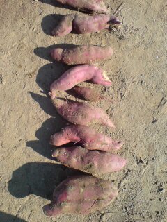 日曜日は、我が家の家族と、パパの実家のみんなで、お芋ほり(落花生取り)に出かけました時期的に12月。冬なのに芋掘りって・・・実は、お芋ほりと言っても、実家の土地に植えておいたサツマイモなので、農家とかに行った訳ではないのですとは、言っても、かなり遅めの収穫家から、高速を使って、1時間30分ほど離れた場所の土地に植えたので、天候や、都合に左右され、ここまで遅くなってしまいました。私も、これ以上お腹が大きくなると、芋掘りどころか、車に乗っているのも、辛くなるので、義父は来れなかったのですが、決行しちゃいました行って見ると、葉が、枯れている義姉は、『こんなに枯れている落花生ははじめて見た~~~』と、大爆笑でも、掘ってみると・・・・・・あった!!いっぱいあった!!こうくんと、たかたんは大喜び一番大きなサツマイモは、こうくんの顔くらいの大きさそして、サツマイモは全部で100個数えてくれたこうくん、ありがとうそして、落花生は・・・・・・たくさん取れましたそして、疲れた私は、車の中で休憩短時間だったけど、楽しく収穫出来ましたとって来たサツマイモと、落花生は、夕方食卓に並び・・・。落花生は、塩茹ででサツマイモは、コロッケ、芋ご飯。サツマスティックになりましたどれも、とても美味しかったですでも、このたくさんの芋と、落花生。ちゃんと消費できるのか。。。 かなり、心配です。。。一応、妊婦だし。体重も、気にしなきゃいけないのに、太る。太る。太る