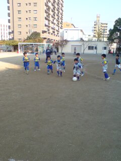 日曜日は、ミニサッカー大会が行われ、こうくんの通っているサッカークラブも参加しましたまだ、サッカーを習い始めて2ヶ月しか経っていないこうくん。まだ、こうくんは試合に出れないと思いつつ、どんな感じなのか、私達も見に行きました行ってみると、1,2年生しかいない。すると!!コーチが、『1年生中心でやるから』・・・もしかしたら、こうくんも出れるの???『ビデオ持ってくればよかった~~』と、悔しそうなパパ1試合目、後半。こうくん登場!!初めての試合で、何をしたらいいのか、わからなかったらしく、「ぼーーーっ」としているこうくん『コウ!!!見てちゃダメだ』と、コーチ。私達夫婦・・・大爆笑2試合目。参加出来ず後半から、出れる予定だったらしいけど、前半の試合中、砂いじりをしていて、コーチに叱られ、参加させてもらえなかったらしいちゃんと、自分のチームの応援しろよ~~怒られるのは、当たり前です3試合目。なんと前半から登場!!1試合目より動きが良くなっているこうくんゴール近くまで行ったものの。。。残念!!試合には負けてしまったけど、いい経験をしたこうくんとても楽しかったみたいで、もっとサッカーが好きになったみたい頑張って、続けてもらいたいです何でも、諦めないで、頑張る子になって欲しと願う、母なのであった