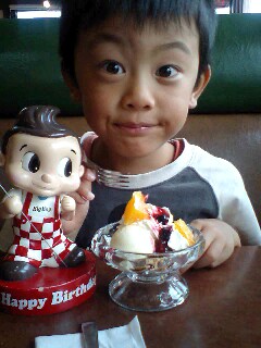 くりっとした目の人形がかわいいと、負けずに息子も目を見開いてパチリ(^O^)