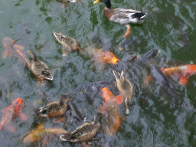 ローカルネタですが最近つくば学園都市へ行く時間が多い…の第2段結構広い公園が存在してますんで、その中に池が御座いますです鯉がいるのだが、1匹の大きさが…デカイ!全部がデカイ売店で鯉の餌が一袋50円で販売中…毎回2~3袋の大人買い?あっという間に寄って来る鯉、鯉、鯉、鯉…それは、それは、凄まじい勢いで食べてます、はい50~60cm以上と思われる大きさの鯉達写真じゃあまり伝わらないかもね~上の2枚は、売店のある高い場所から撮影下に降りて行ったのがコレちなみに売店の近くに子猫が4匹位遊んでまして…本能なのでしょうか?自分より遥かに大きい鯉を狙う姿サスガデスお魚はくわえられませんね~子猫では…