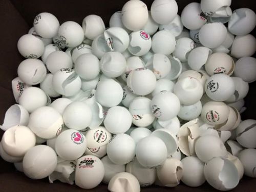 そろそろ、卓球関係者で話題になっている「プラスティックボール」について、お話しをしなくてはなりませんね。まぁ言ってみれば「ろくな話を聞いた事がありませんなぁ…」に集約されると思います。値段大幅アップ、耐久性大幅ダウン、ニューボールにフルスィングをかませたとたんに、一撃必殺でパックリ割れてしまう…なんて事はごく普通にあるようです。H岡さんが、某N学園の練習で使ったところ、一日に10ダース割れたそうです。計算すると…360円×12×10は…43,200円!!!それがたった一日で木っ端微塵に吹き飛んだ事になります。写真を見てもらえば、一目瞭然ですが、メーカーにかかわらずドカドカと割れた様子がうかがい知れます。次男の学校では、今のところ全日本、全日本ジュニア出場者はプラボールで練習をしているそうですが、若い力全員でパキパキ割っていたら年間のボールの予算なんて、簡単に使い果たしてしまうでしょうね。当然すぐに改良されるだろうなんて甘い根性では、卓球破算に追い込まれかねません。しかしながら、まさか子供達をラージボールの道に進ませるわけにもなりませんので、なにか対策を打たなくてはなりませんが、今のところ「金」で解決するしか方法はないようです。卓球用品の値上げ旋風が昨年吹き荒れましたが、そんな事なんてこのボール問題からすれば、ジャブ程度の事だったとすら感じさせる大問題ですなぁ…サッカーボール、野球ボール、テニスボール…毎日数千円、数万円単位でボール代がかかる競技なんて聞いた事がないですなぁ~そうですどんどん卓球のブルジョア化は進行しております。もうネクラのスポーツなんて言わせませんよ、数年後には5万円のラケットに1万円のラバーを2枚貼り、1試合に1個1,000円のボールが5個は割れるような、庶民には手の届かないスポーツに”成り上がっている”かもしれませんねぇ…あっ!その頃は消費税10パーセントですか…怖いなぁ (´(エ)`)