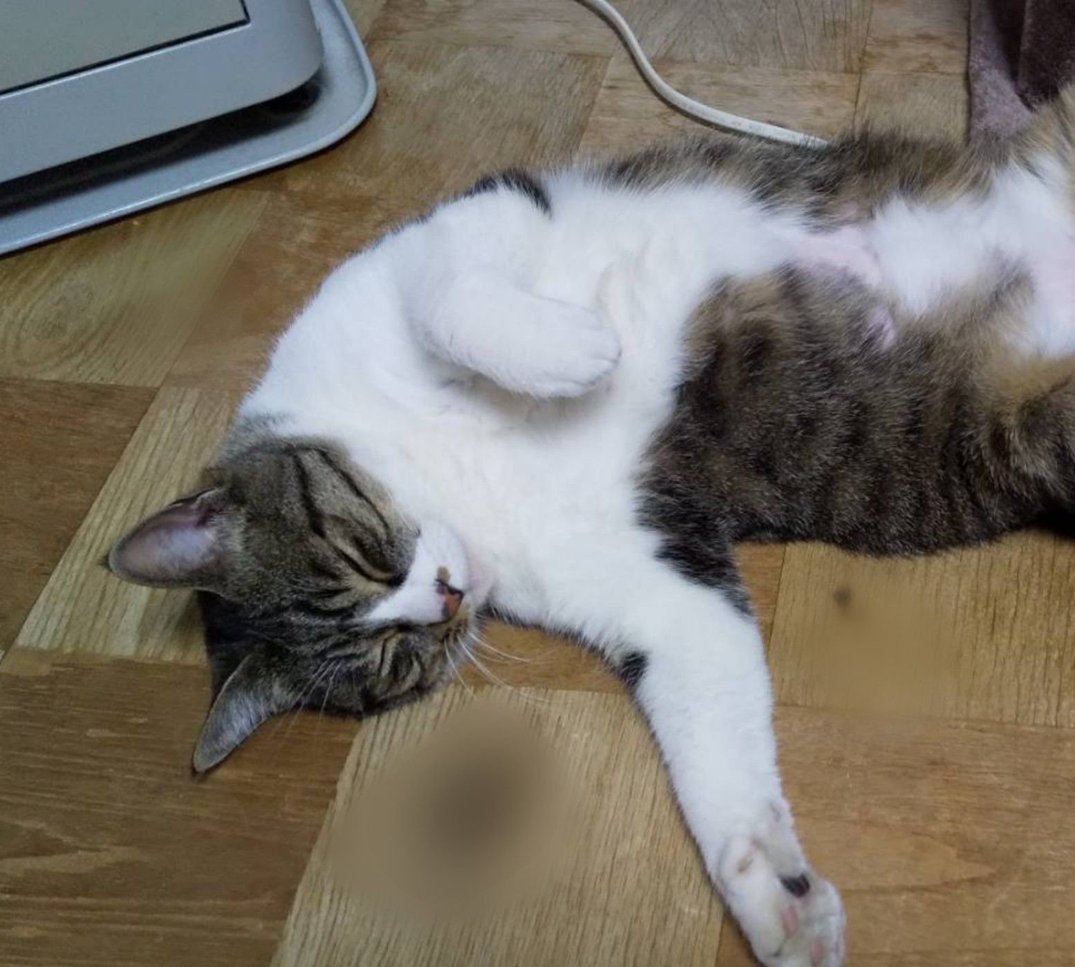 寝ていると久し振りに「ねこにゃん」が朝方布団に入って来ました。こんな気温ですから(笑)