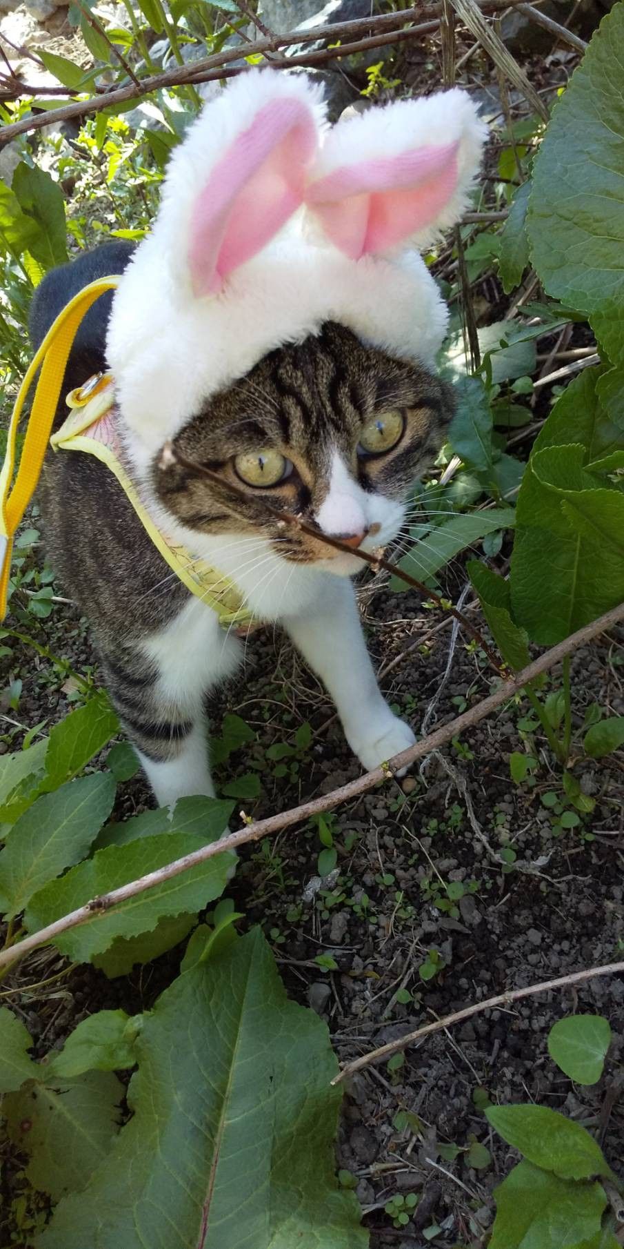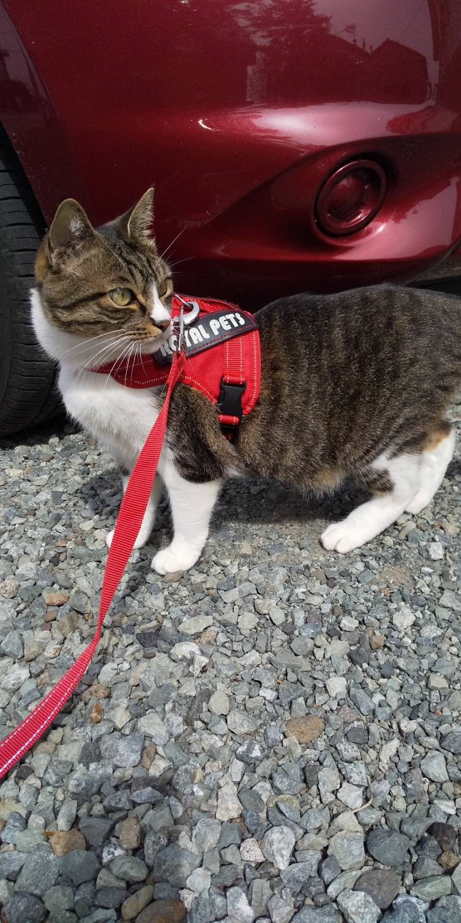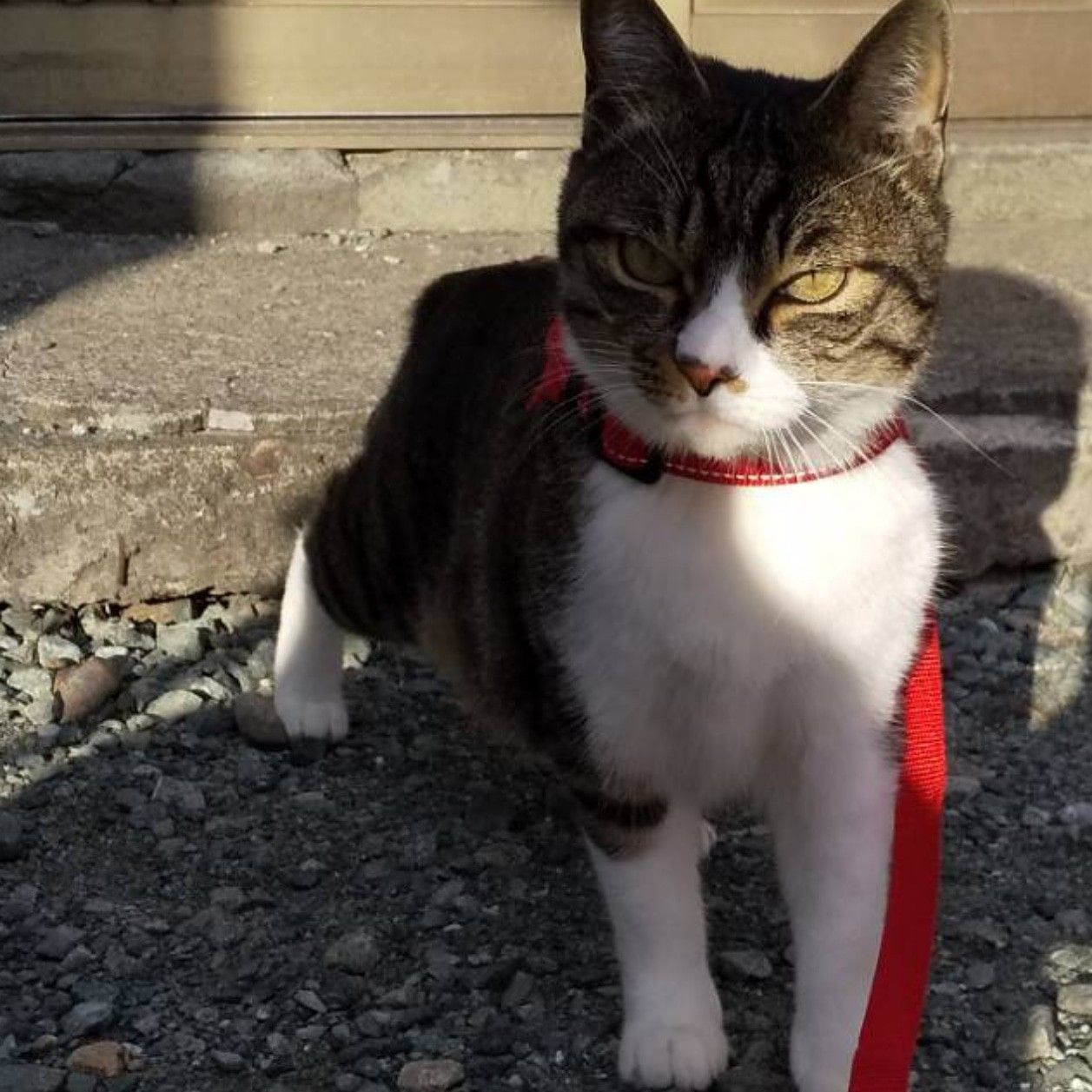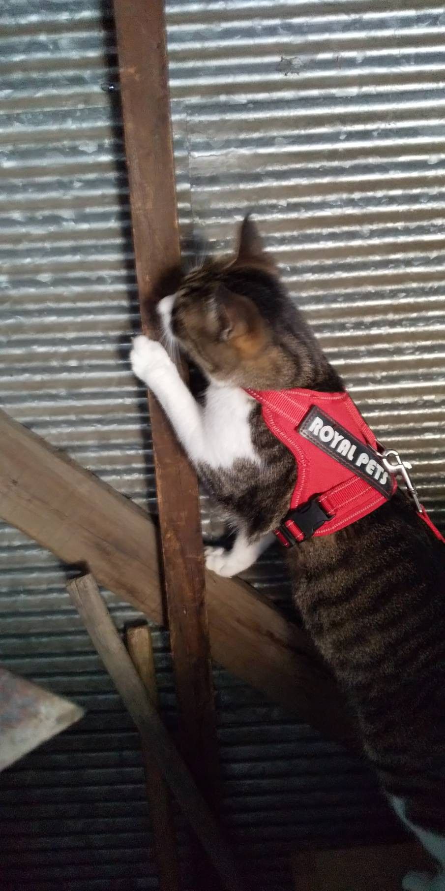 散歩中に脱走! 物置で確保とのことでした。 一瞬でハーネスを抜ける技を持っていますなぁ(^(ェ)^)
